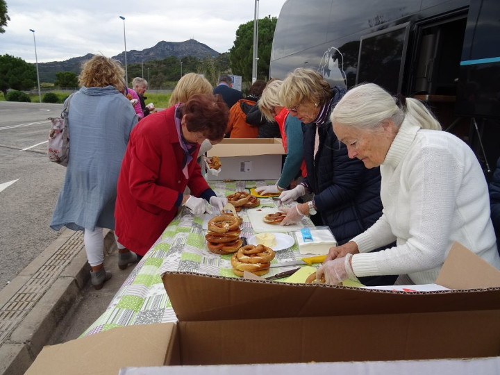 Morgens hatte es am Parkplatz Safor die Frühstückpause mit heißem Kaffee und Tee, Butter-Brezeln, Berlinern und Croissants gegeben.